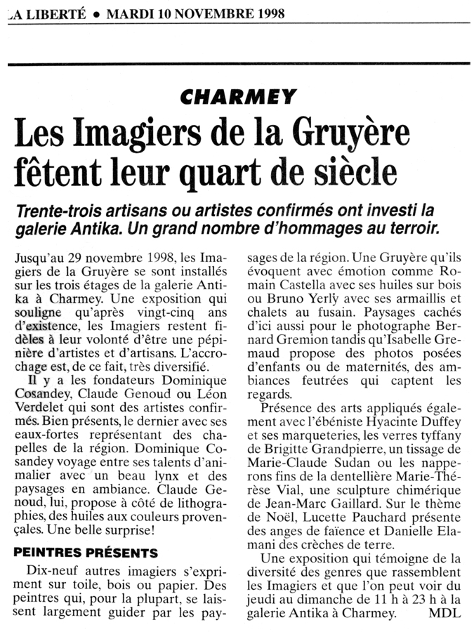 31.10.1998–29.11.1998 | Charmey, Galerie Antika
