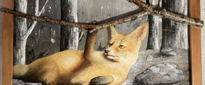 Le cadre en vieux bois artisanal inclut une vraie branche, rendant la scène plus prenante.